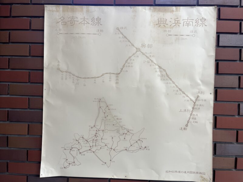 建物には鉄道の思い出に関する展示も。昭和60年の鉄道路線図は路線網というにふさわしい充実ぶり。当然これらのほとんどはもうない。